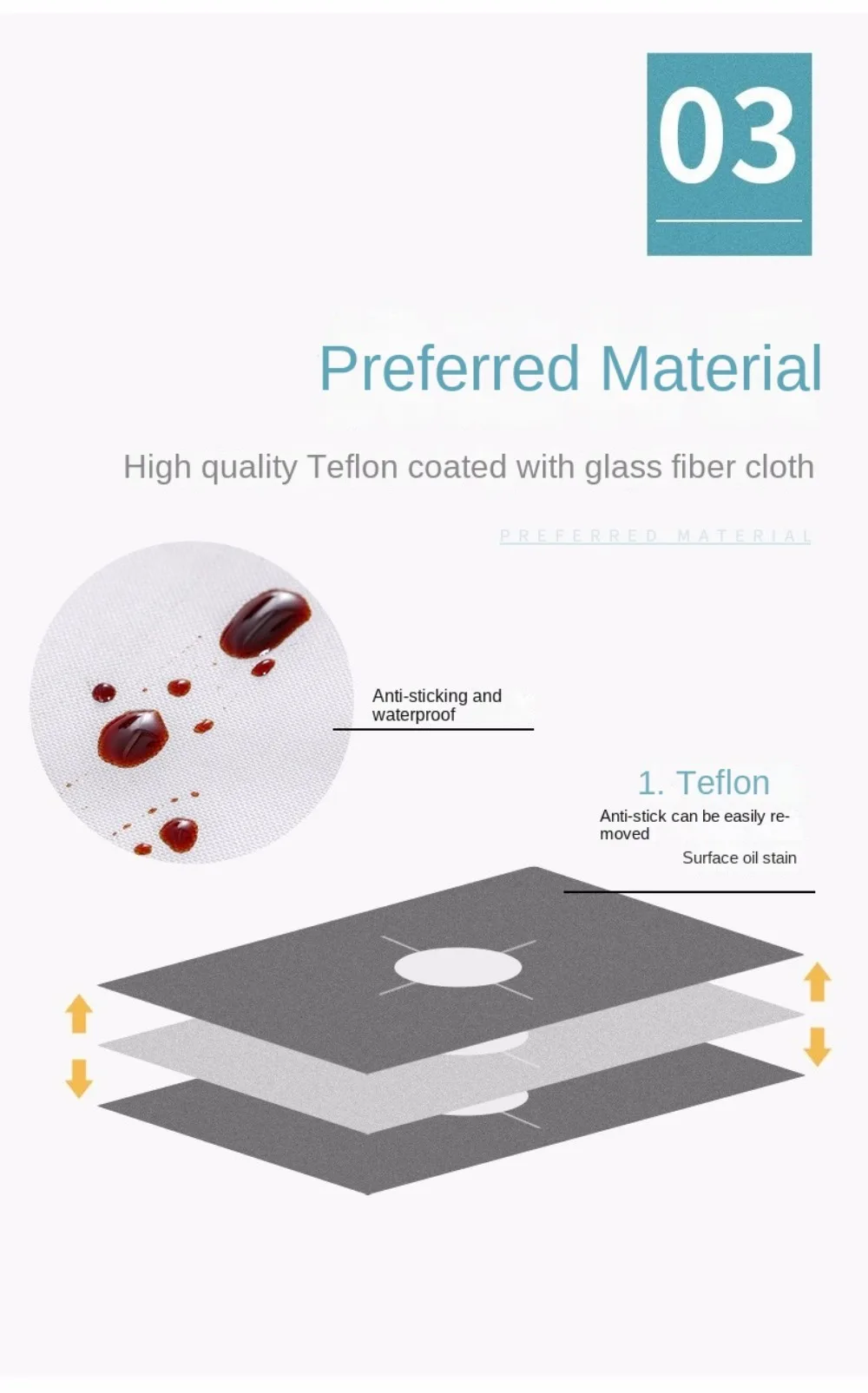 2. **Non Stick Reusable Stovetop Protector**: This set of four gas stove pads is made from high-quality, non-stick material that is both reusable and heat resistant. Designed to protect your stovetop from dirt and spills, these pads are easy to clean and maintain. Simply place them under your burners to keep your stove looking new and clean.