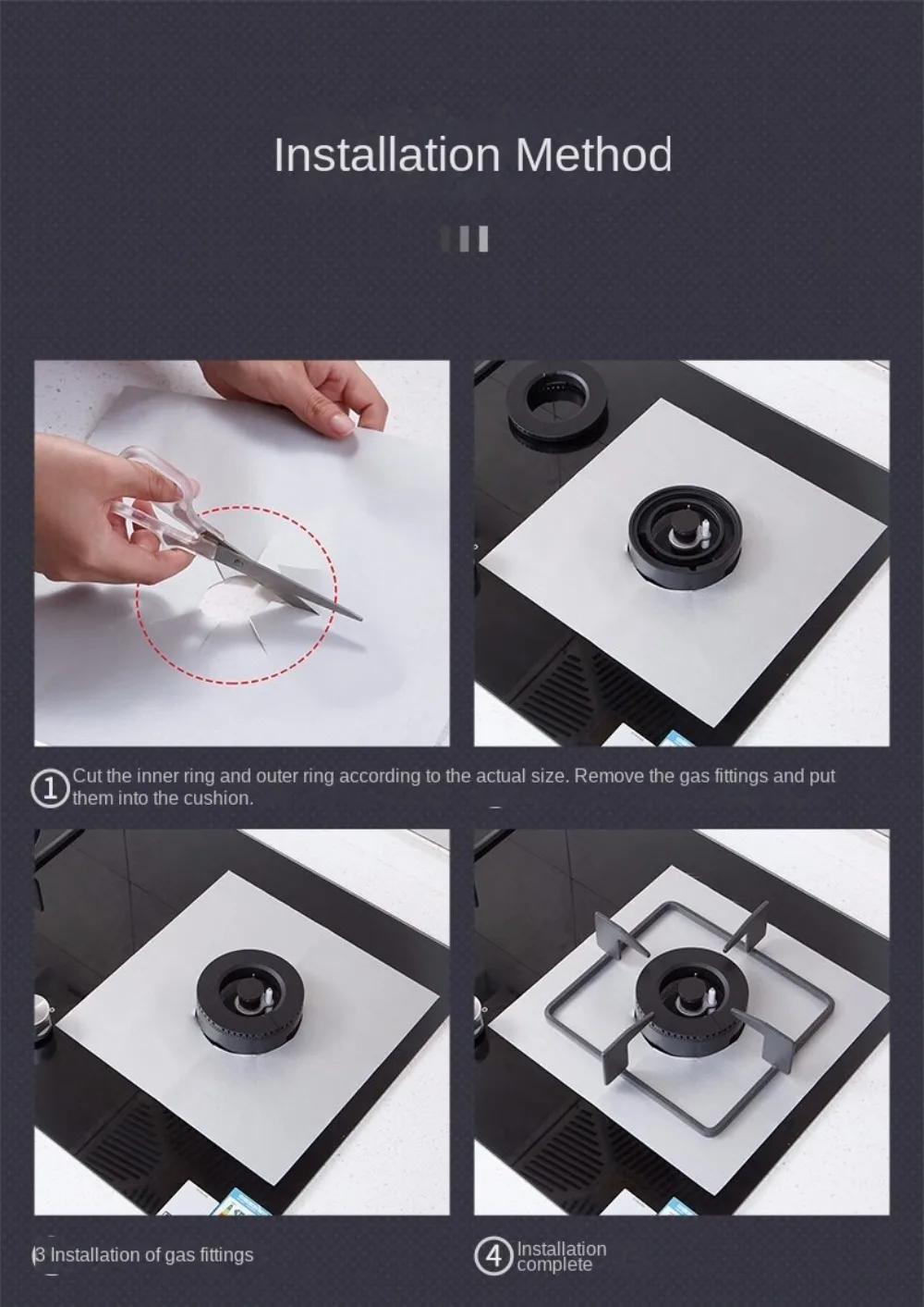 1. **4pcs Protective Gas Stove Pad**: These non-stick, reusable stovetop protectors are designed to keep your gas stove clean and protected from spills and stains. Each pad is heat resistant and easy to clean, making them a practical addition to any kitchen. The set includes four pads that can be easily trimmed to fit your stove, ensuring a perfect fit and maximum protection.