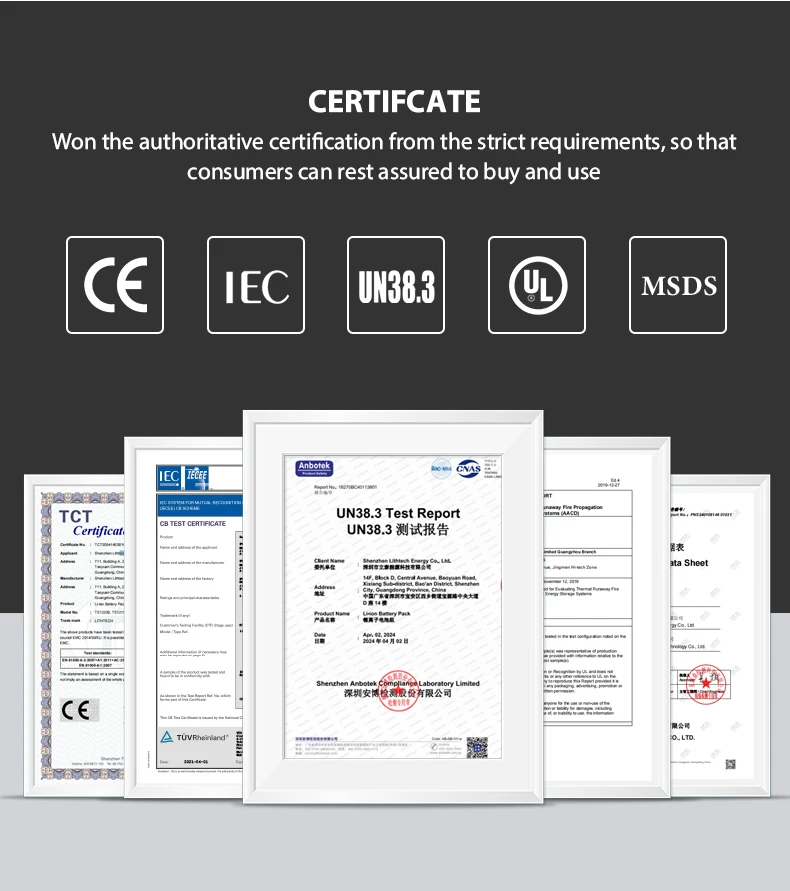 - Certificate: CE/RoHS/UN38.3/MSDS/IEC62619 / uI