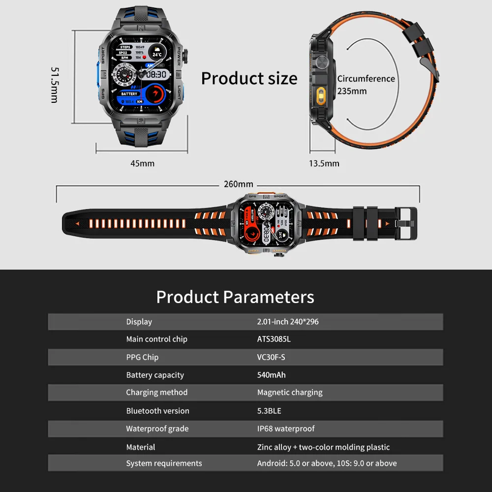 2.01- inch AMOLED HD display screen Outdoor sports watch