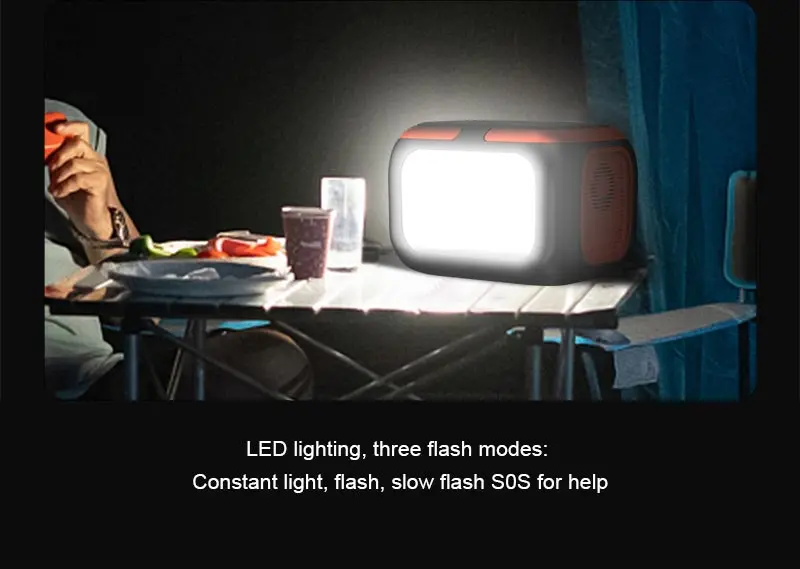 8、LED lighting, three flash modes: constant light, flash, slow flash S0S for help;