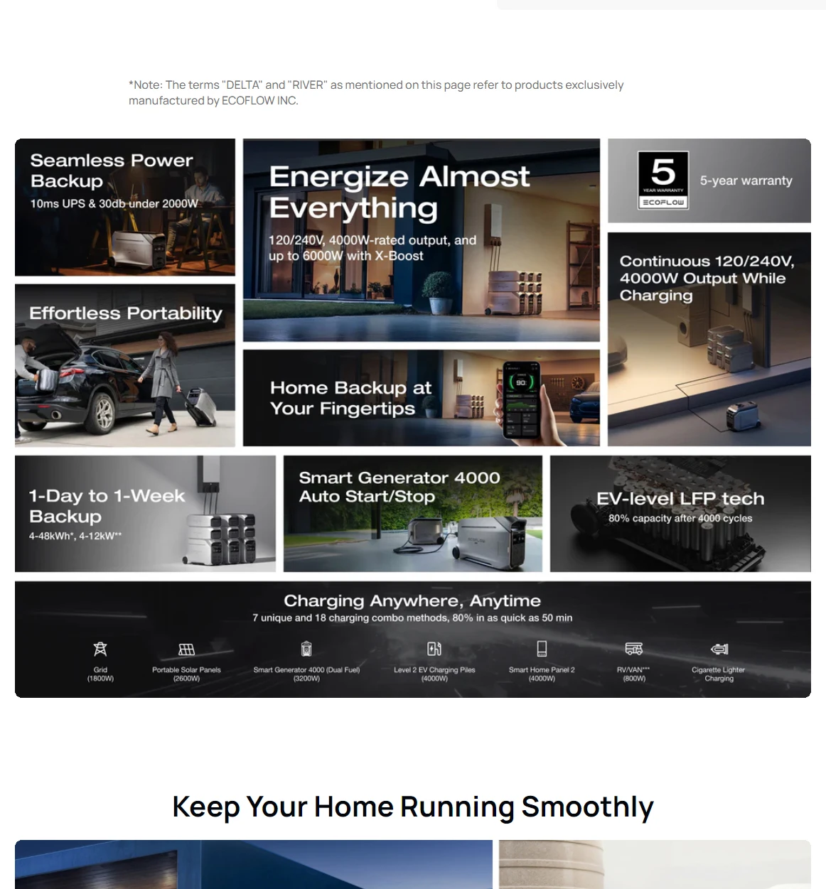 EcoFlow is comprised of a diverse team of over 2,500 professionalsin more than 20 countries and regions. Nearly half of our workforce is dedicated to research and deveelopment, helping us secure 320 invention patents. Our products have received certifications from renownedtest houses and standards such as TUV Rheinland, UN38.3, the International Safe Transit Association,RoHS and more. These certifications validate the high standards we adhere to for performance, reliability and environmental sustainability.