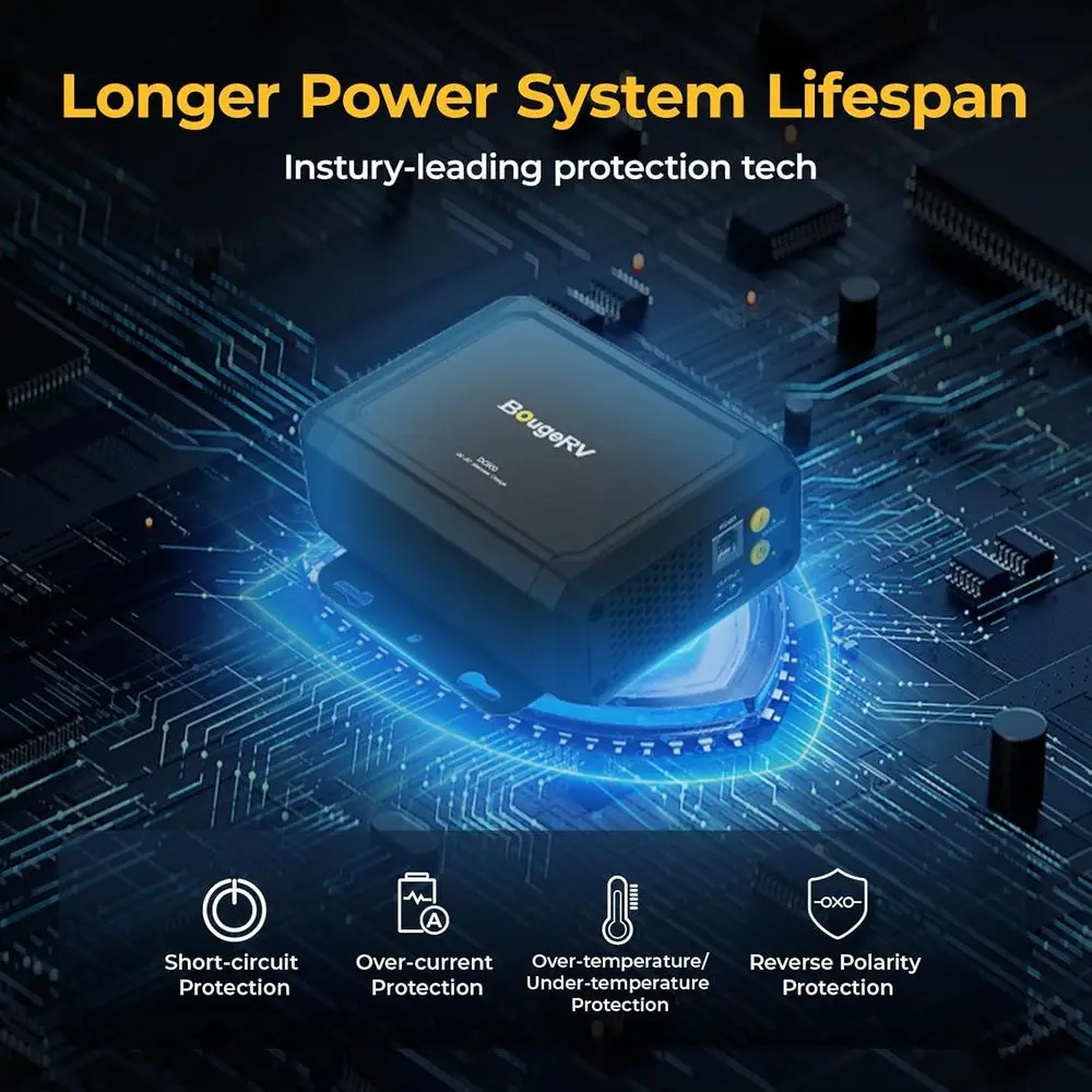 Smart App Control: Easily monitor and control your charging status with our smart app. With a BT range of 15m, you can remotely adjust voltage and check real-time operation status while you’re on the road. This makes it perfect for portable power stations and long-haul travel