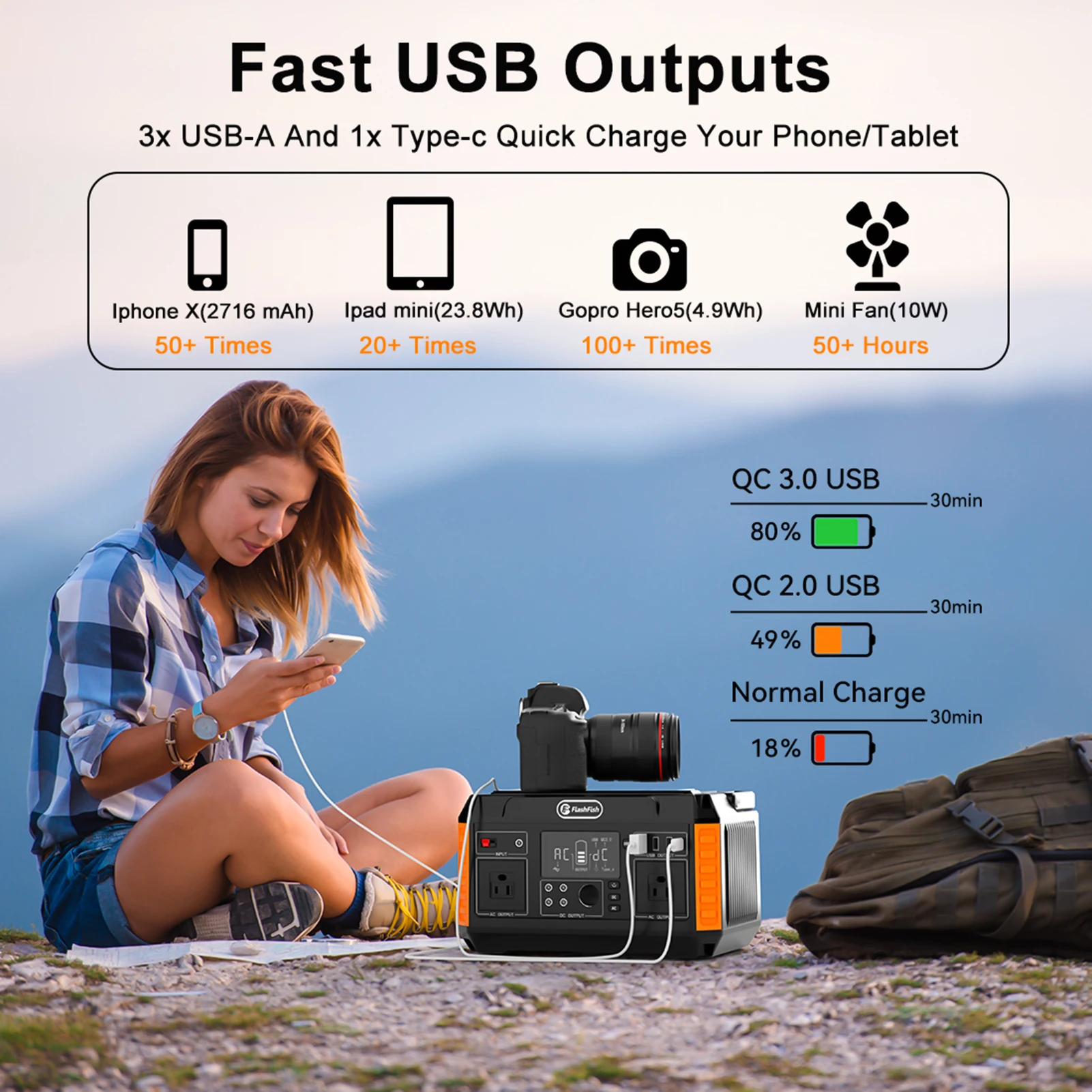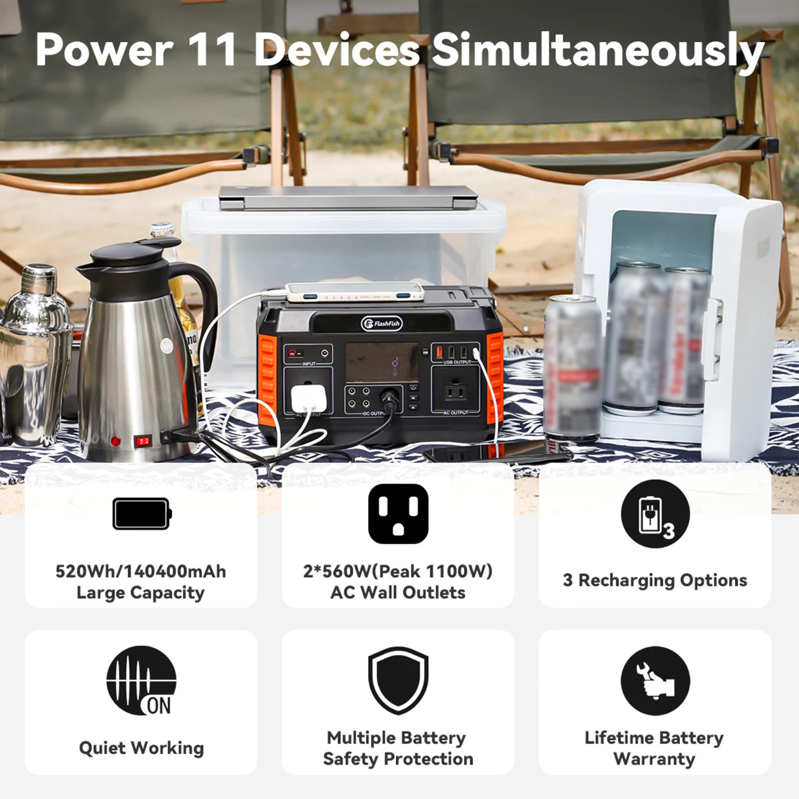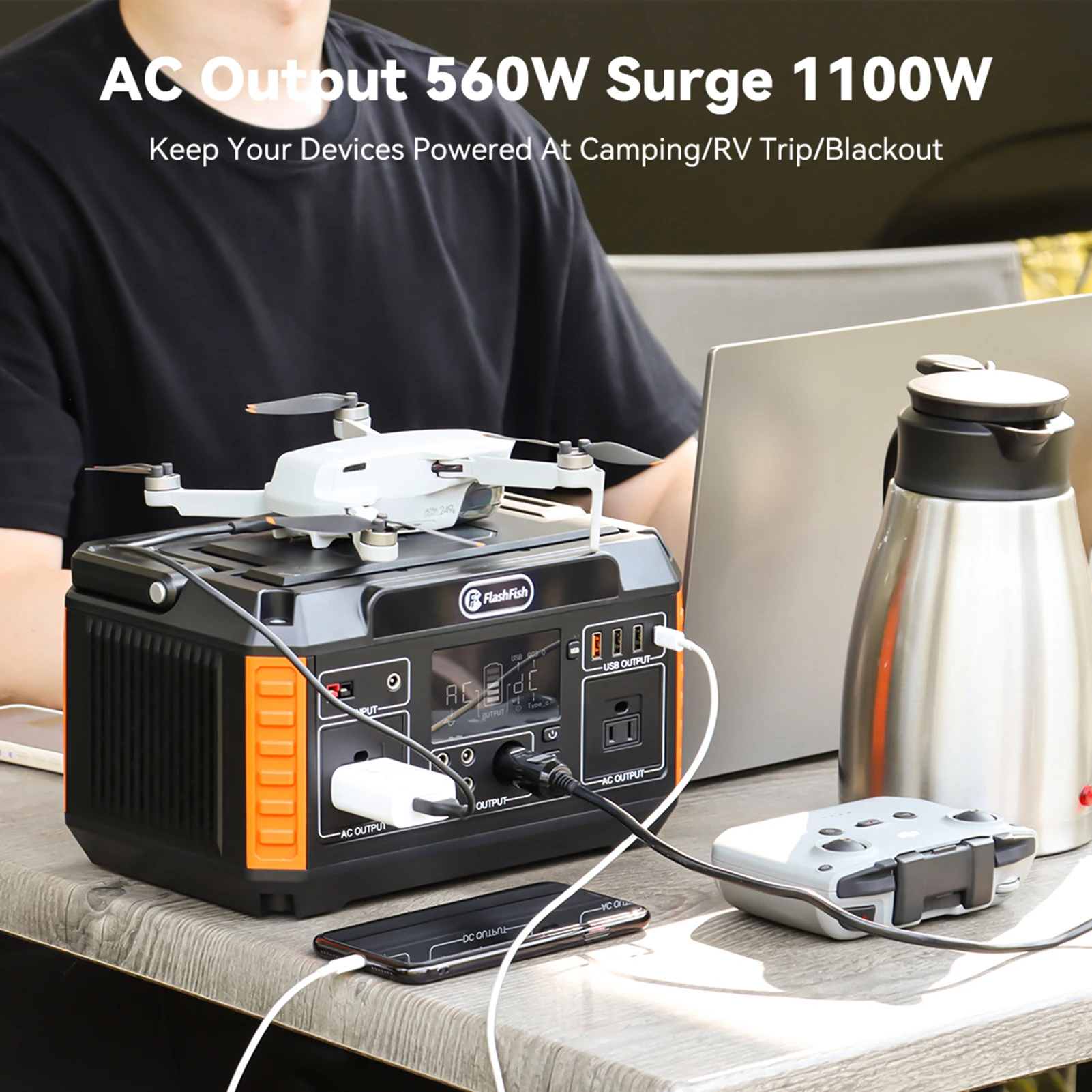 Flashfish P60 Portable Power Station 140400mAh/520Wh Solar Generator 600W CPAP Battery Power Station With 3 Charging Modes for H