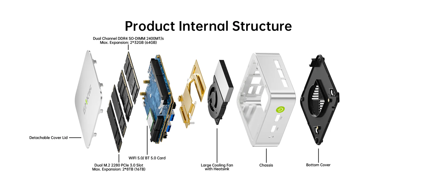 This mini PC has a built-in powerful fan, heat pipe and upgraded aluminum plate to effectively dissipate heat ,run calmly and enjoy coolness