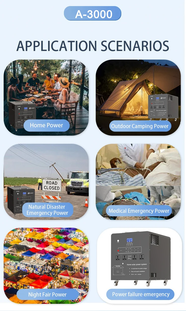 blankets,mini refrigerators, etc.), outdoor sports/fishing, home emergency backup (routers, mobile phones, medical equipment (such as ventilators), electric kettles, fans, etc.), courtyard/garden use, self-driving/RV travel (car rice cookers, electric blankets,coffee machines, laptops, etc.), outdoor stalls/mobile offices, natural disaster emergencies, children’s outdoor activities,photography/live broadcasting, outdoor pet care, etc.
