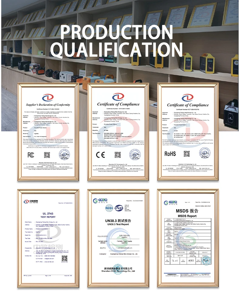 A: The products have relevant certifications such as CCJC, IEC, CE, UL, UN38.3, MSDS,CCTI, Eg.
