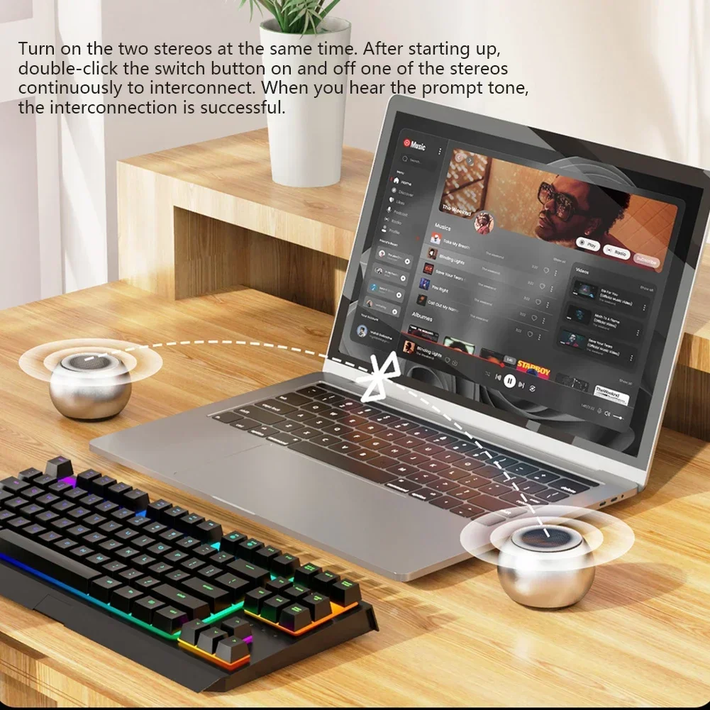 After two TWS connected speakers are turned on at the same time, press the M key on one of them twice, and then the two machines will automatically search for connections