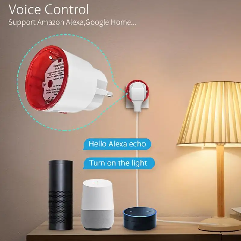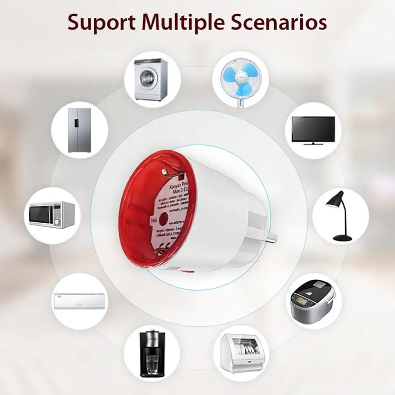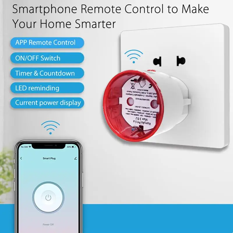 Mobile Phone Controlled 16A Zigbee 3.0 Tuya WIFI Power Plug, EU Smart Socket with Energy Monitoring Feature