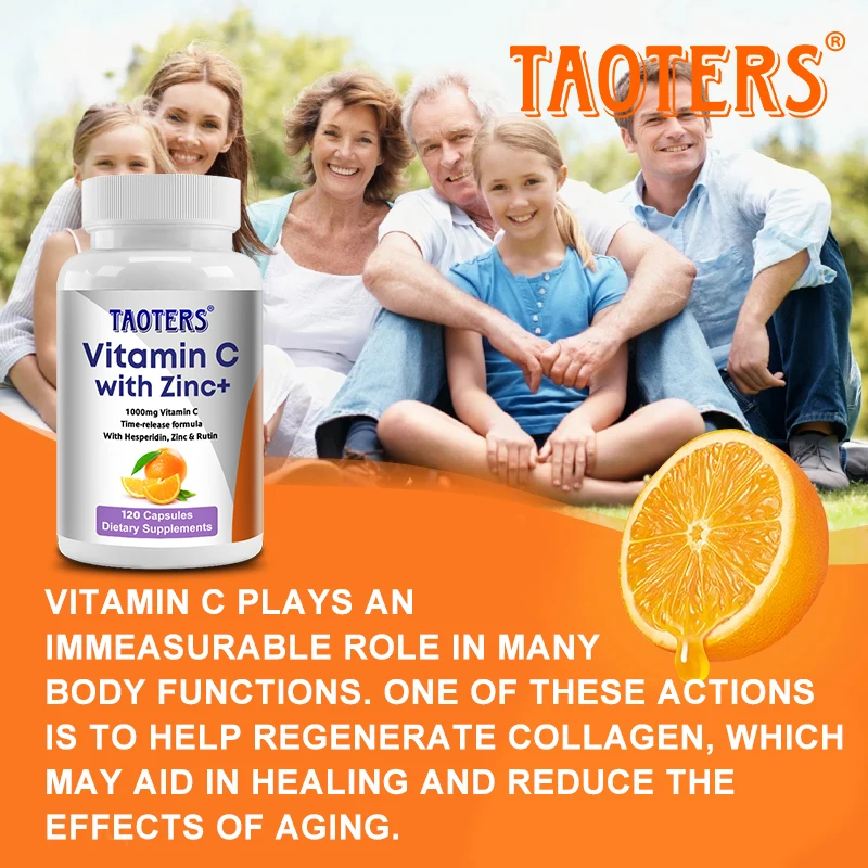 Organic Vitamin C Capsule 1000 Mg, Contains Hesperidin, Zinc and Rutin, Strengthens Immunity, Anti-oxidation, Beauty and Health