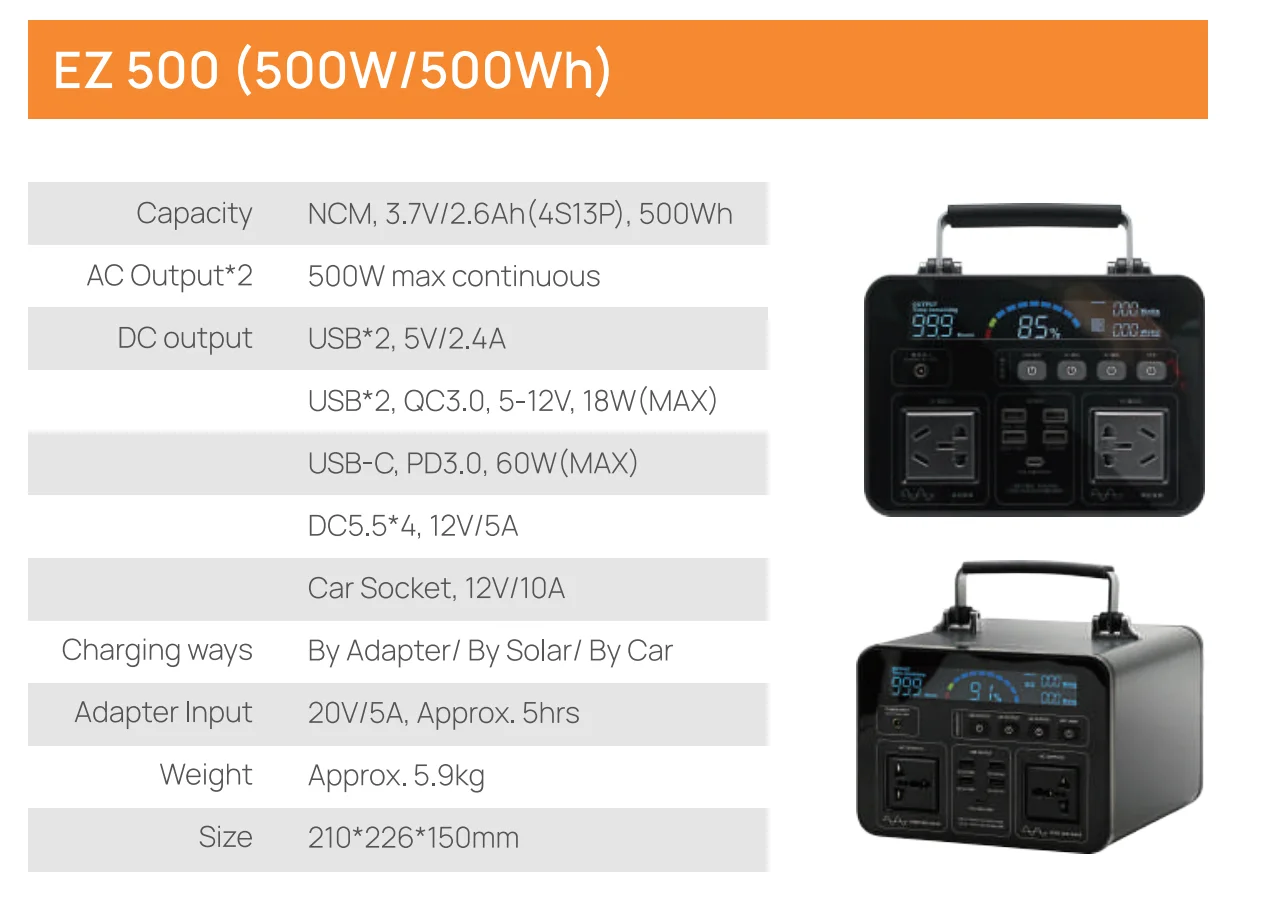 Outdoor 500Wh portable power station LiFePO4 battery 500W solar generator for camping trips and emergencies