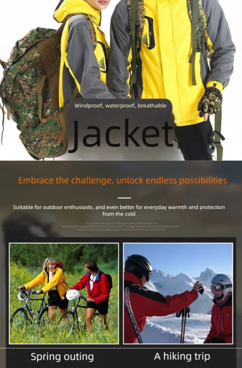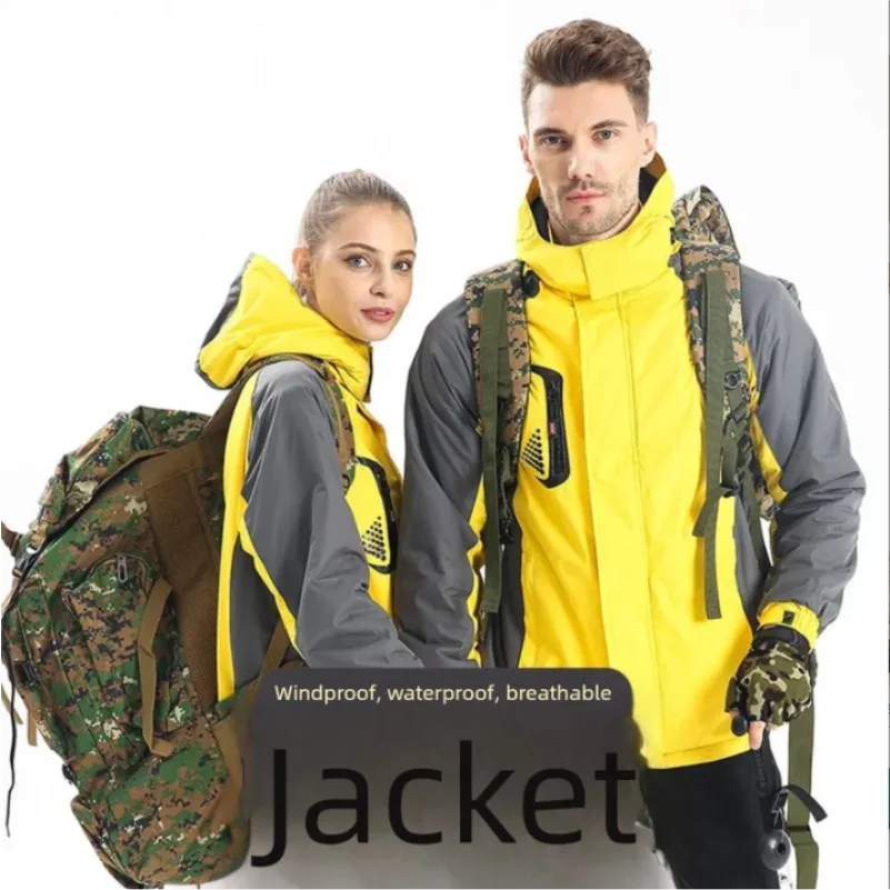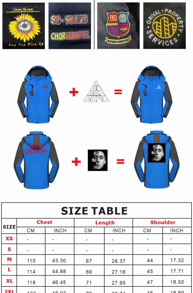 Outdoor Hiking Jacket Men Autumn Thermal Waterproof Windproof Hooded Jackets Customized DIY Group Clothing Camping Clothes