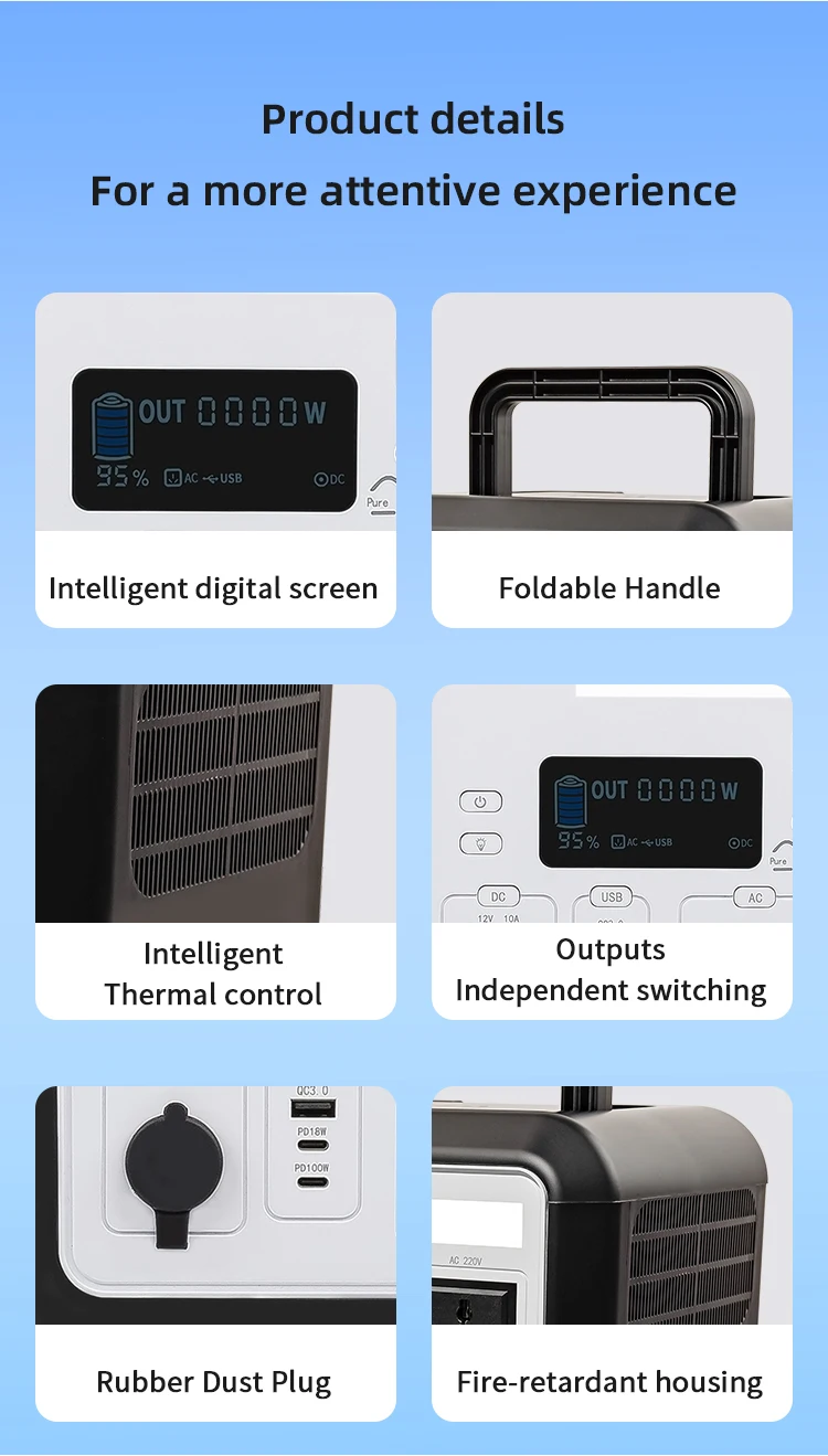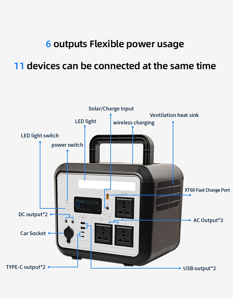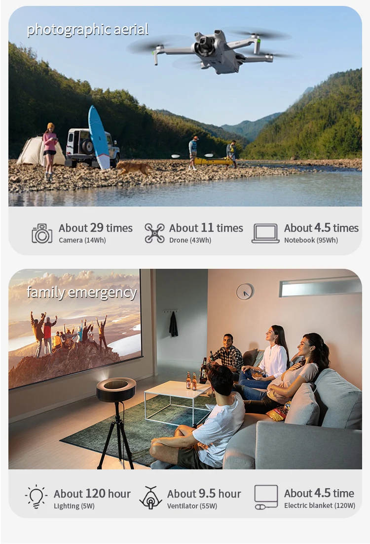 7. AC port compatible with all kinds of device , like water boiler,fan , juice extractor, coffee maker,frying pan, and etc.