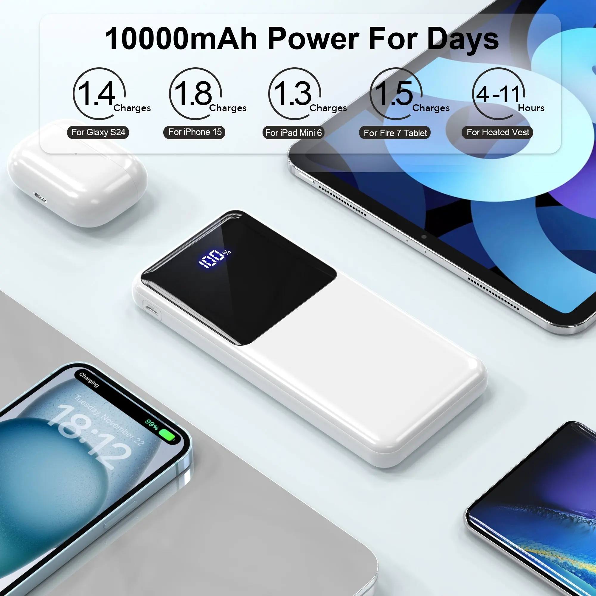 Works flawlessly with iOS, Android, tablets, and more—no compatibility guesswork. Power up iPhones, Samsung Galaxy, Google Pixels, or even USB-C laptops seamlessly. -