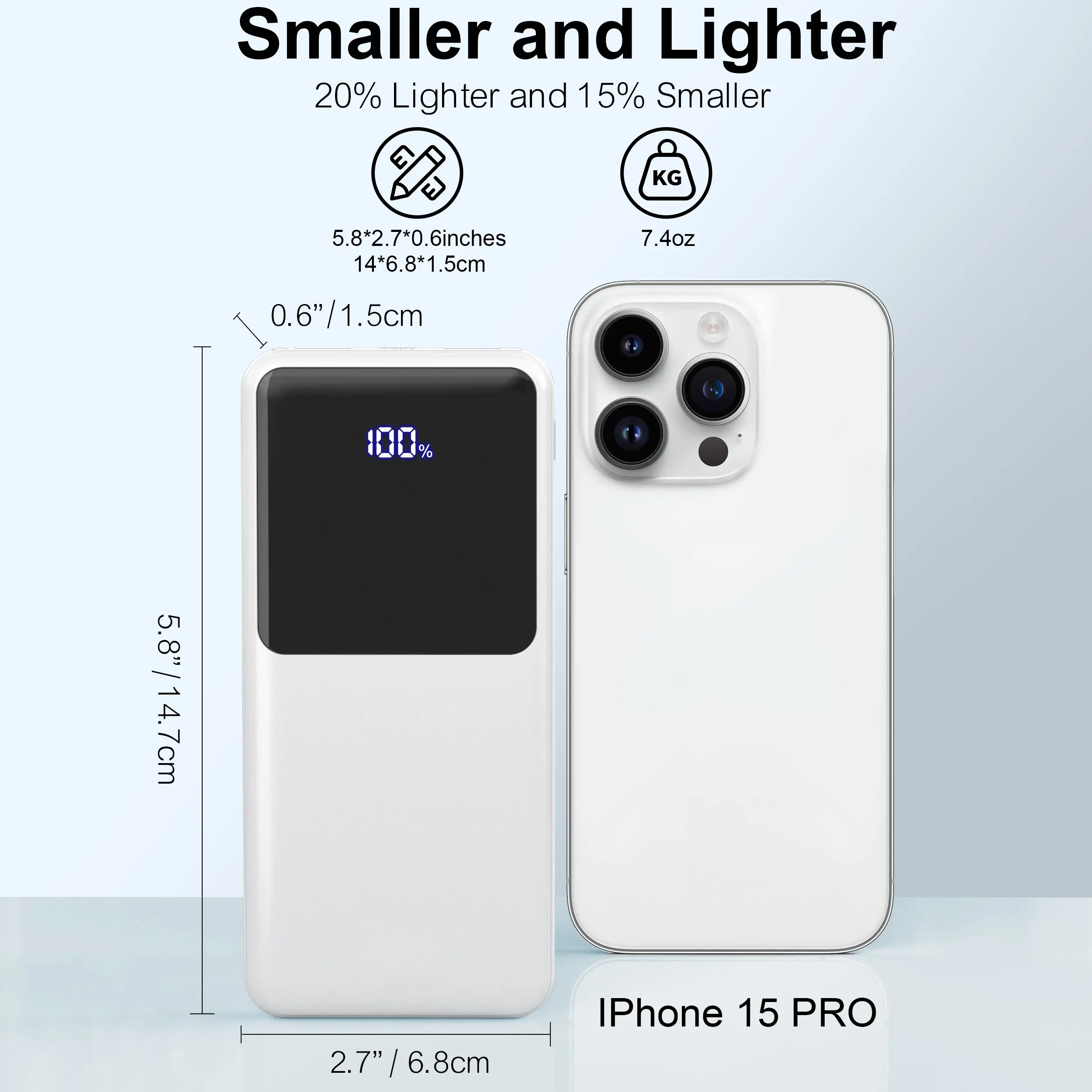 At just 0.6 inches thick, this power bank is slimmer than most wallets and designed for effortless portability. Perfect for pockets, purses, or travel bags—never weigh yourself down with bulky chargers. -