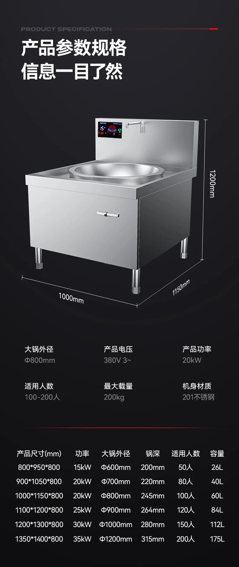 ⑥ 【 35KW 】 1200mm large pot stove