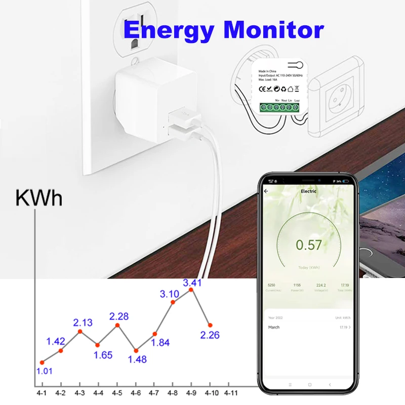 Tuya Smart Life ZigBee Switch Electricity Energy Monitor KWh Din Rail 16A Timer Socket Mini Module Works with Google Home Alexa