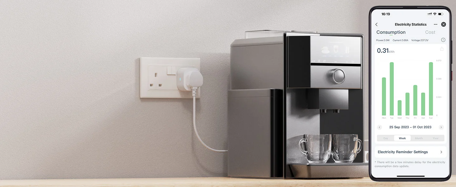 : This smart plug supports energy monitoring, allowing real-time tracking of appliance power consumption via the app. It provides a clear graphical display of usage trends, enabling users to optimize energy management, improve efficiency, and reduce electricity costs by scheduling appliance operation more effectively.